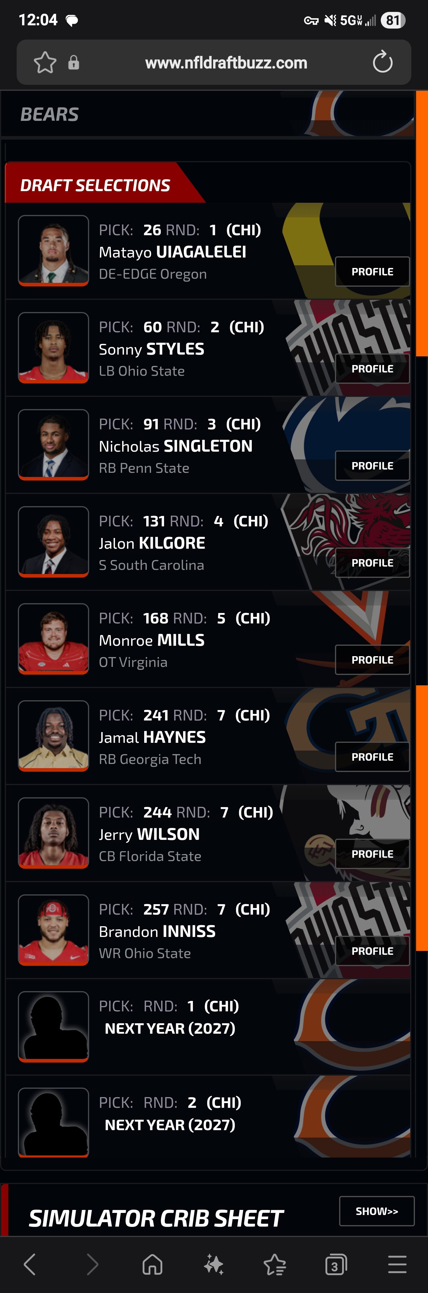 No one knows what the Bears will do. The draft build route wont net that high level pass rush threat for a couple years. I would only make this type of trade this offseason if the Bears are a playoff team. The player would have to be a Maxx Crosby level pass rusher, some one that would lift the D to that elite level. Two 1sts picking 22 or after for two years will never bring a player of Crosbys stature for 2026 and 2027 season . The cap hit will hurt having a player like that compared to 2 late round rookies but its SB or bust. Attached is a draft with an edge/de that might be available.