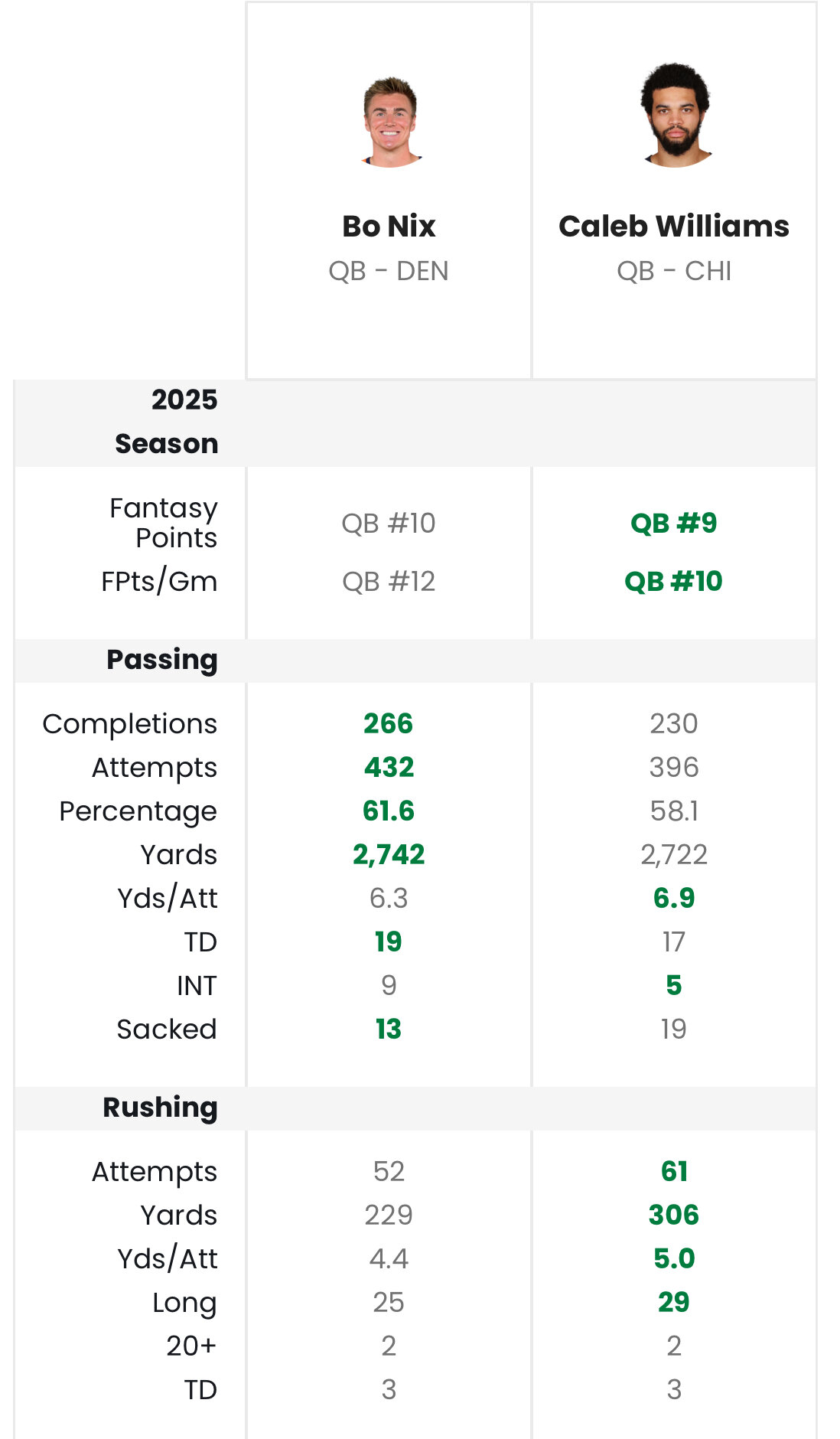 It's my thing lol. I use EPA/Play for CHI offense vs EPA/Play vs GB Defense, then take into account average plays run vs average plays against, then PPG vs Pts Allowed. So if you are running more plays and your opponents run less, your EPA is more impactful than theirs, and vice versa. None of the injuries are really accounted for in a meaningful way, which puts the Bears in a better position going into next week considering Kraft was their #1 Receiving threat and Wyatt was their top DT.