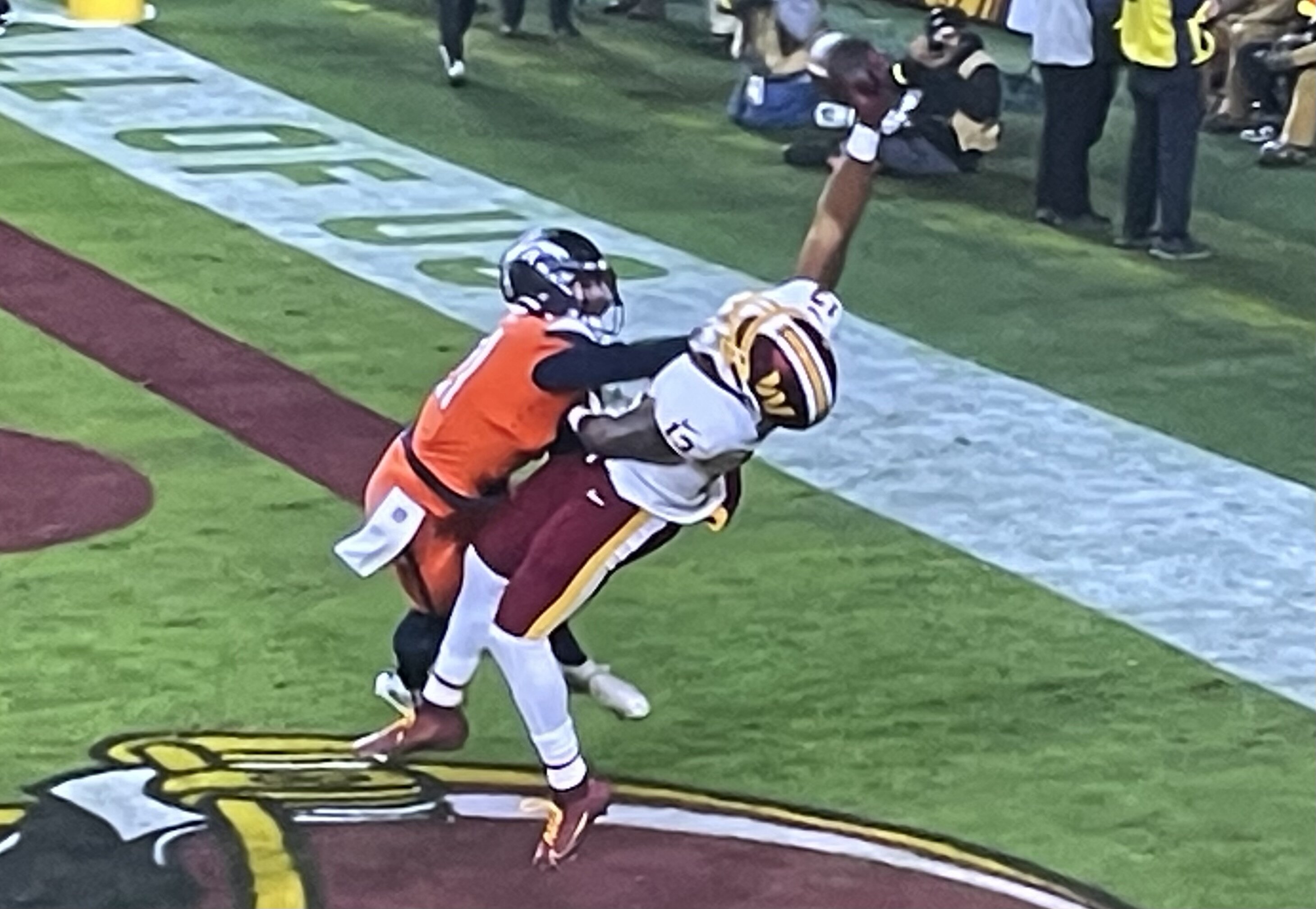 Nope. His knee hit about a millisecond after releasing the ball. Night has been one of highlights with this amazing catch by Burks. His second career TD.