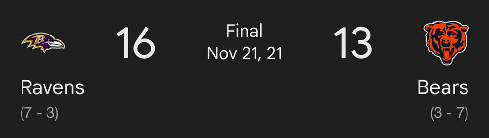 Week 8 Official Game Thread - CHI @ BAL, Oct 26th, 12PM CDT, CBS, CHI +6.5